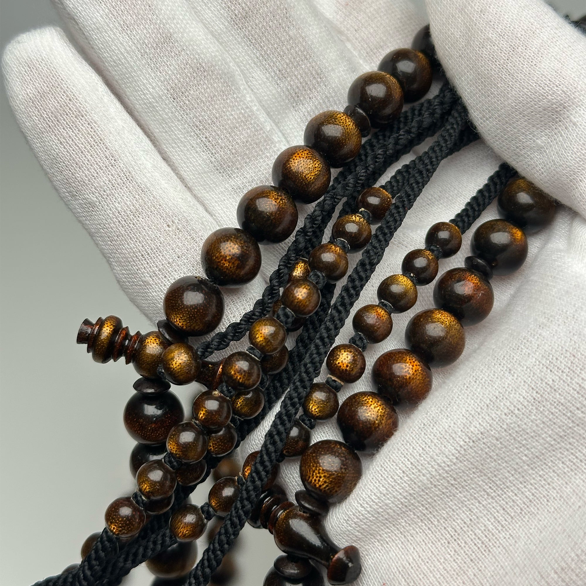 Each Kourous Tijani is entirely handcrafted in Indonesia by artisans who are disciples of the Tijaniyya Sufi order , following ancestral techniques passed down from master to student. The craftsmanship ensures a balanced, sturdy, and comfortable tasbih, perfect for your daily prayers.