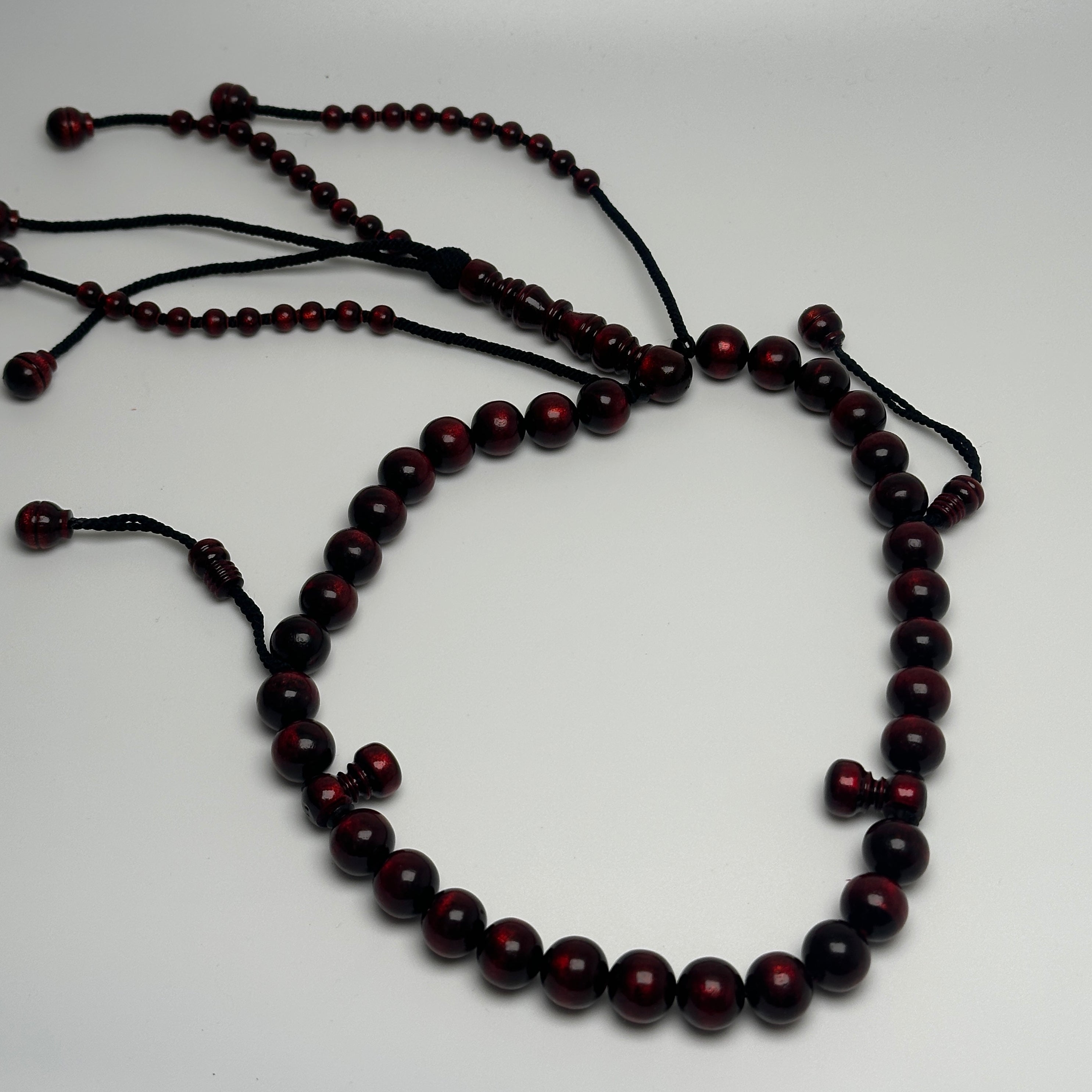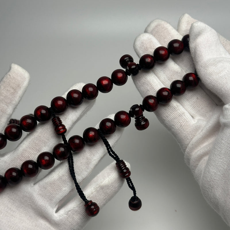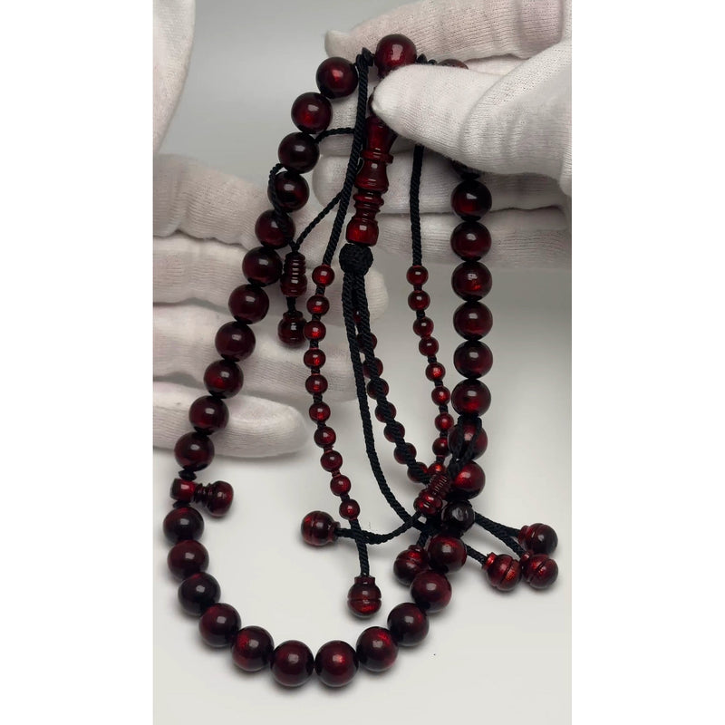 Personalized coral tasbih: 33 12mm black coral beads with red highlights