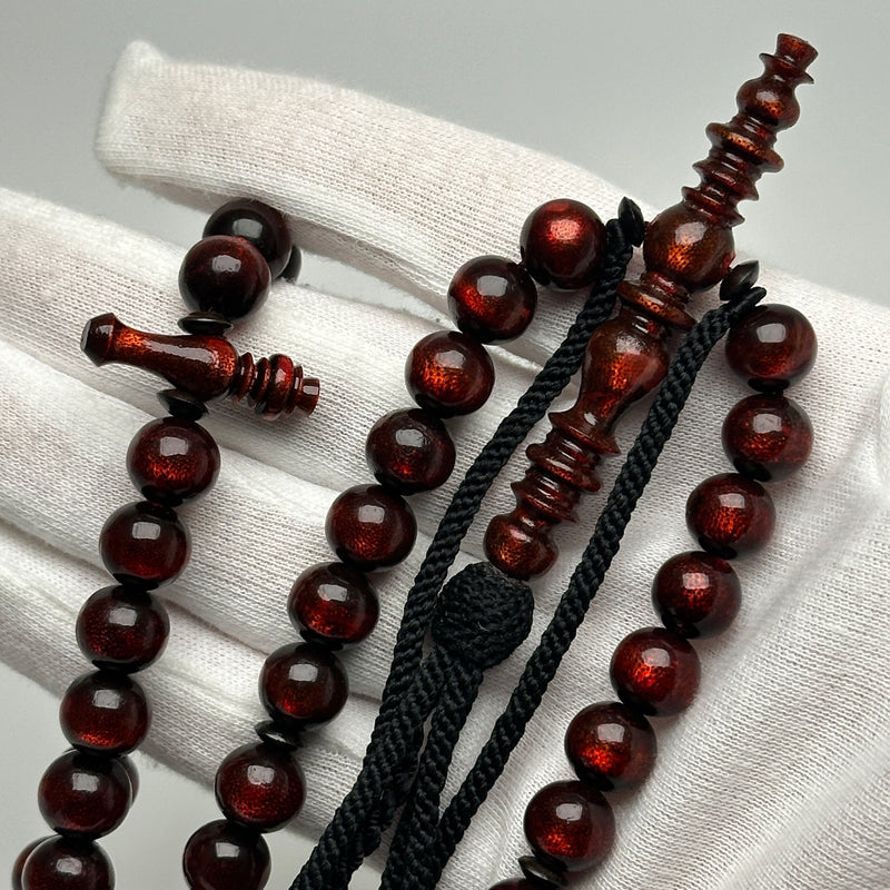 Tasbih Tijani en Yusr Khor 10 mm – Corail Rouge, Ficelle Noire | Kourous Artisanal