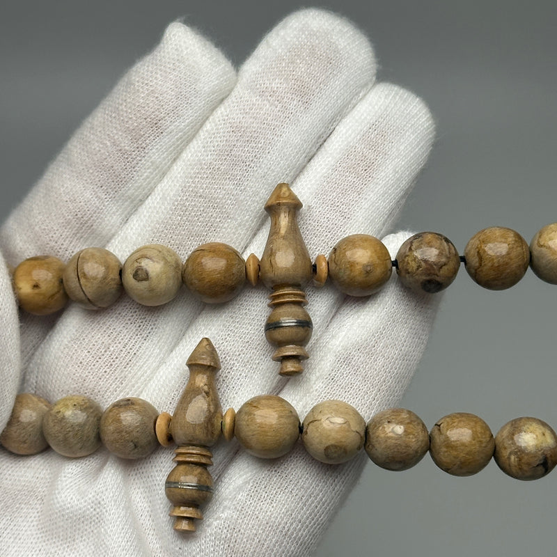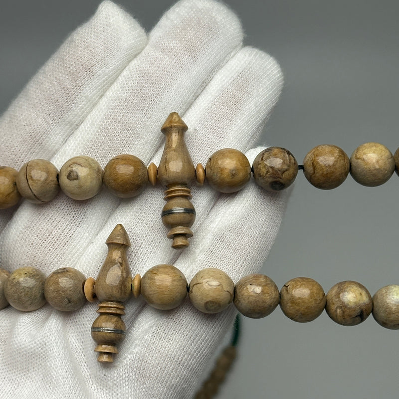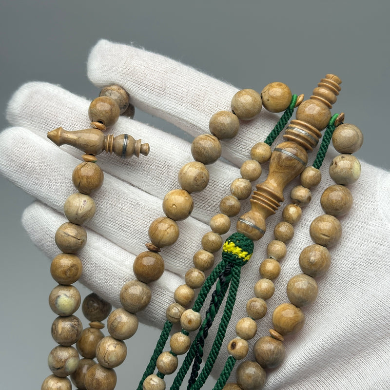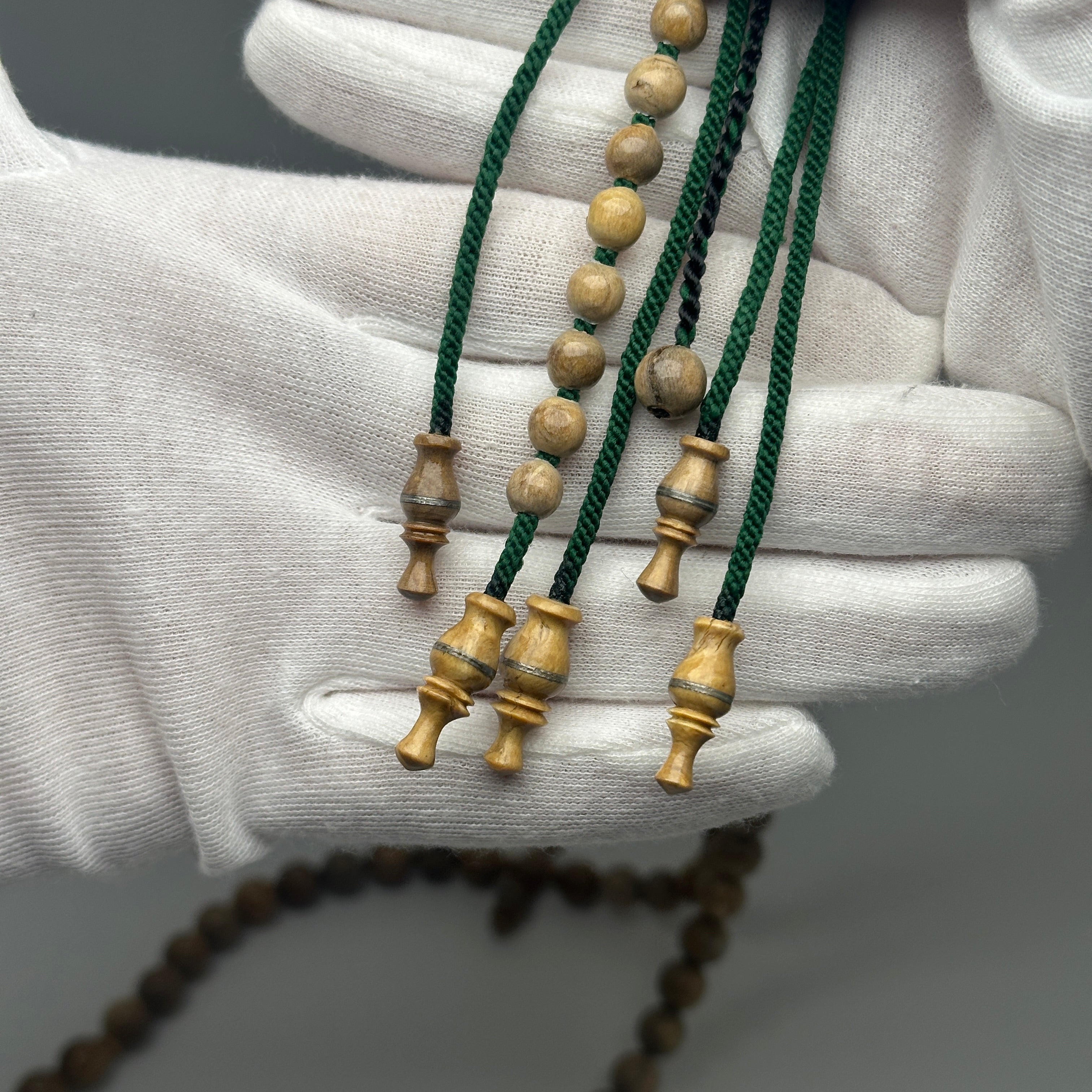 Chaque Kourous Tijani est façonné entièrement à la main en Indonésie par des artisans disciples de la Tariqa Tijaniyya, suivant un savoir-faire ancestral transmis de maître à élève. L’assemblage garantit un tasbih équilibré, solide et agréable en main pour accompagner vos oraisons quotidiennes.