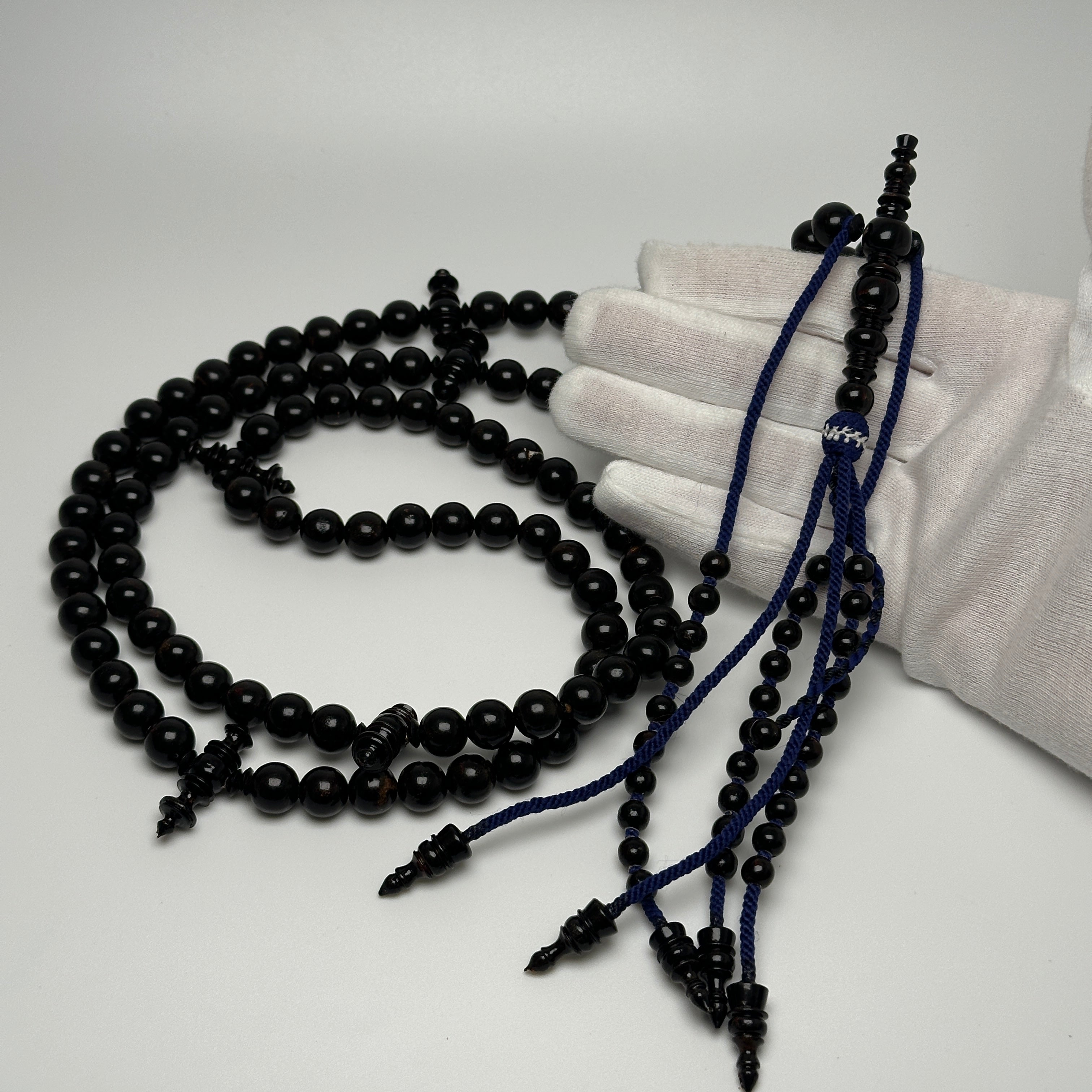 Tasbih Tijani en Yusr Khor 10 mm – Corail Noir ficelle bleue | Kourous Artisanal