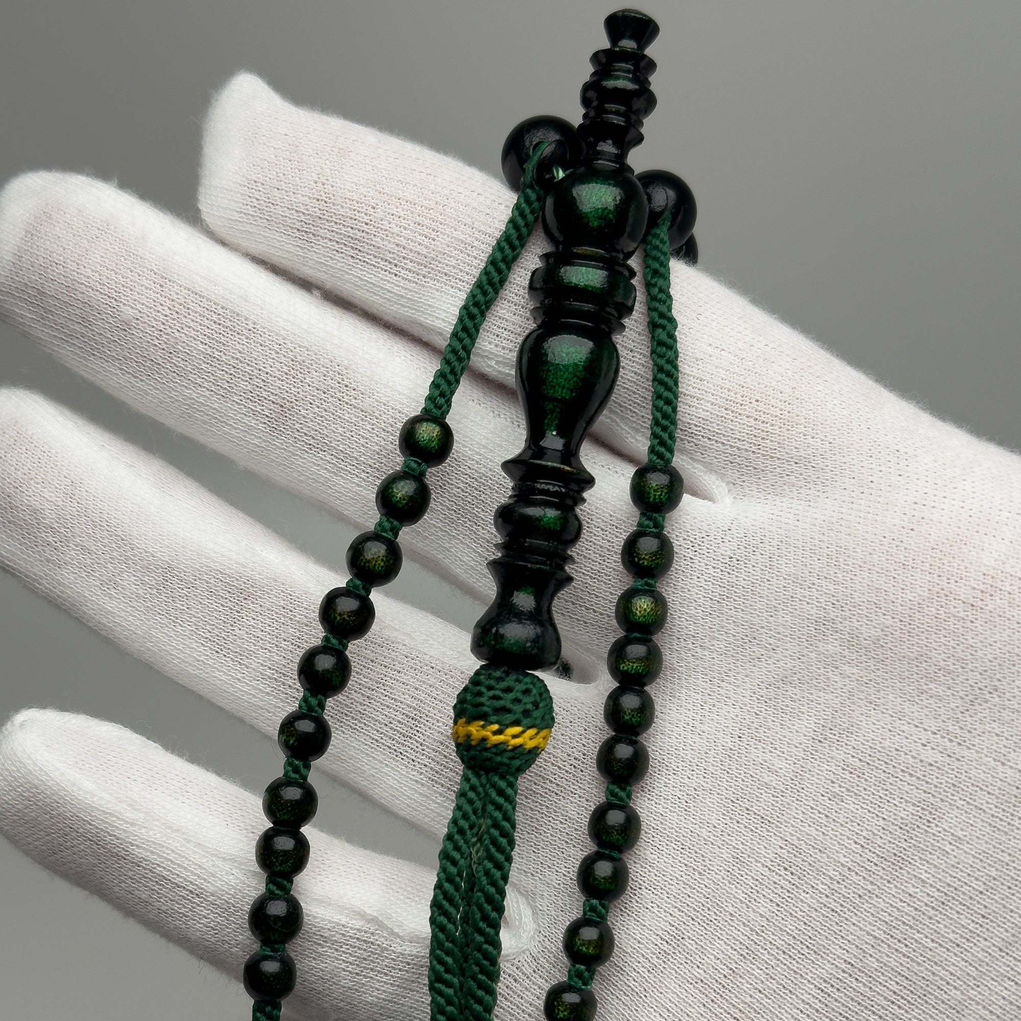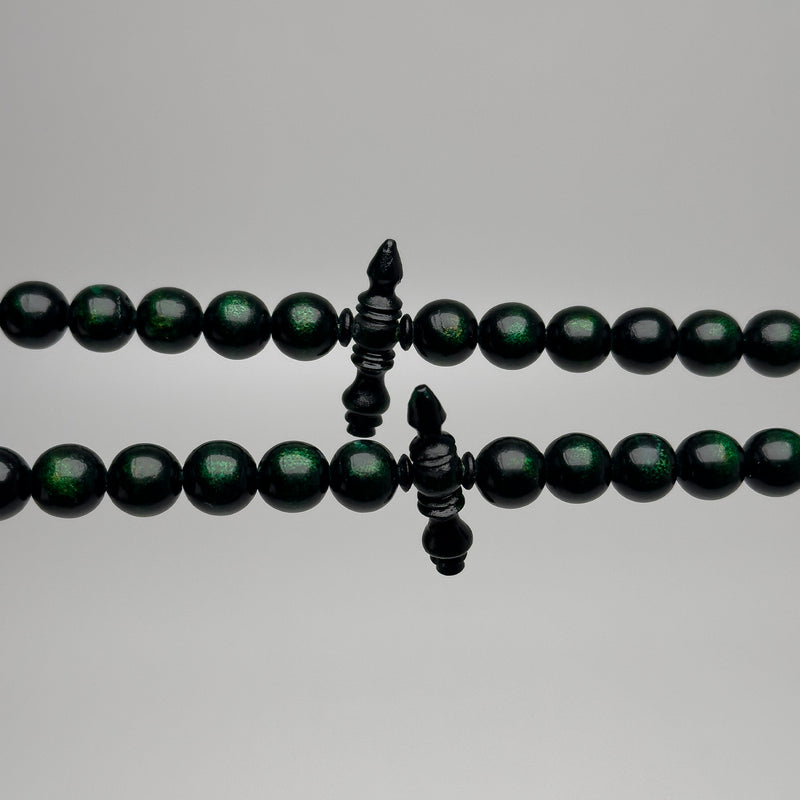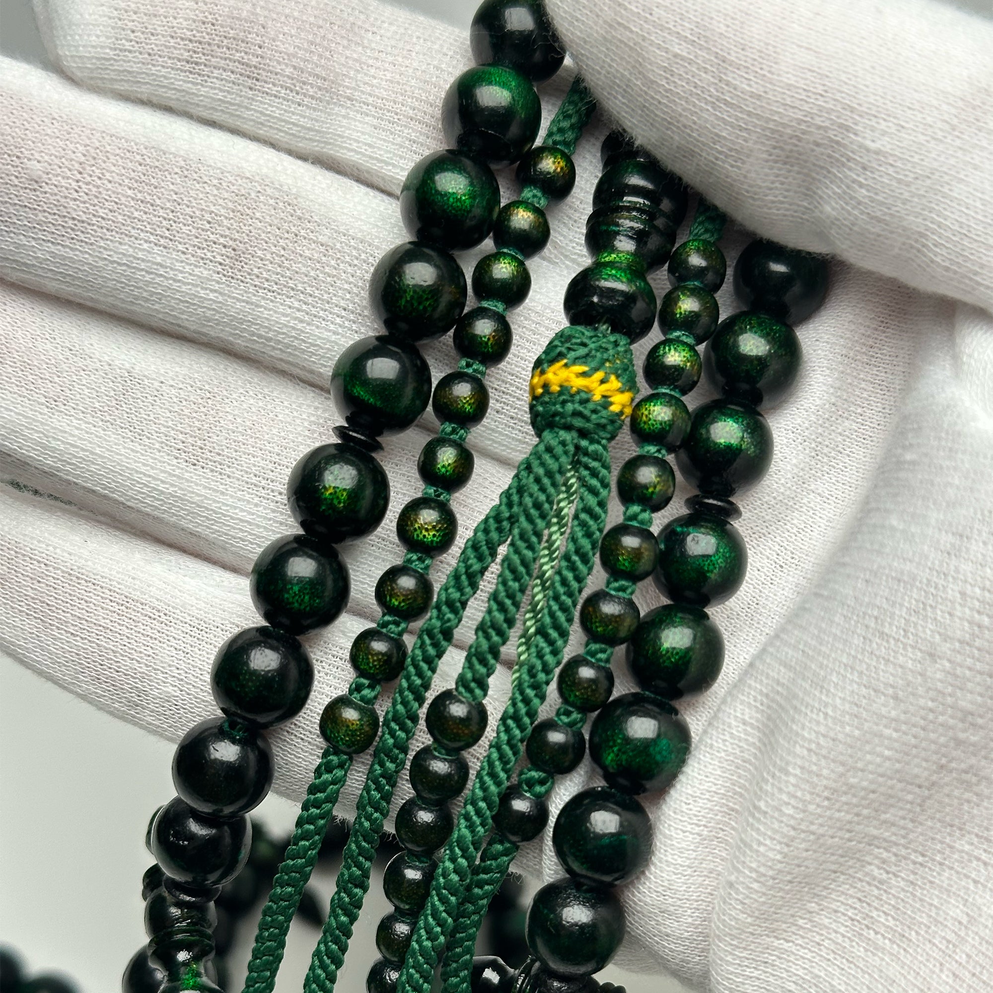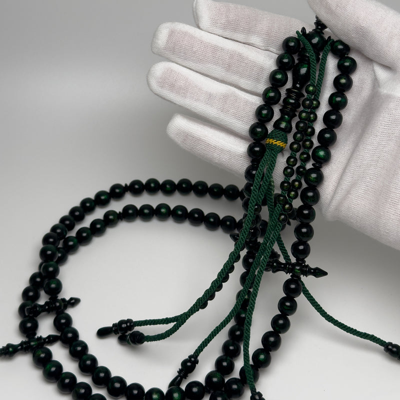 Tasbih Tijani en Yusr Khor 10 mm – Corail Vert, Ficelle Verte | Kourous Artisanal