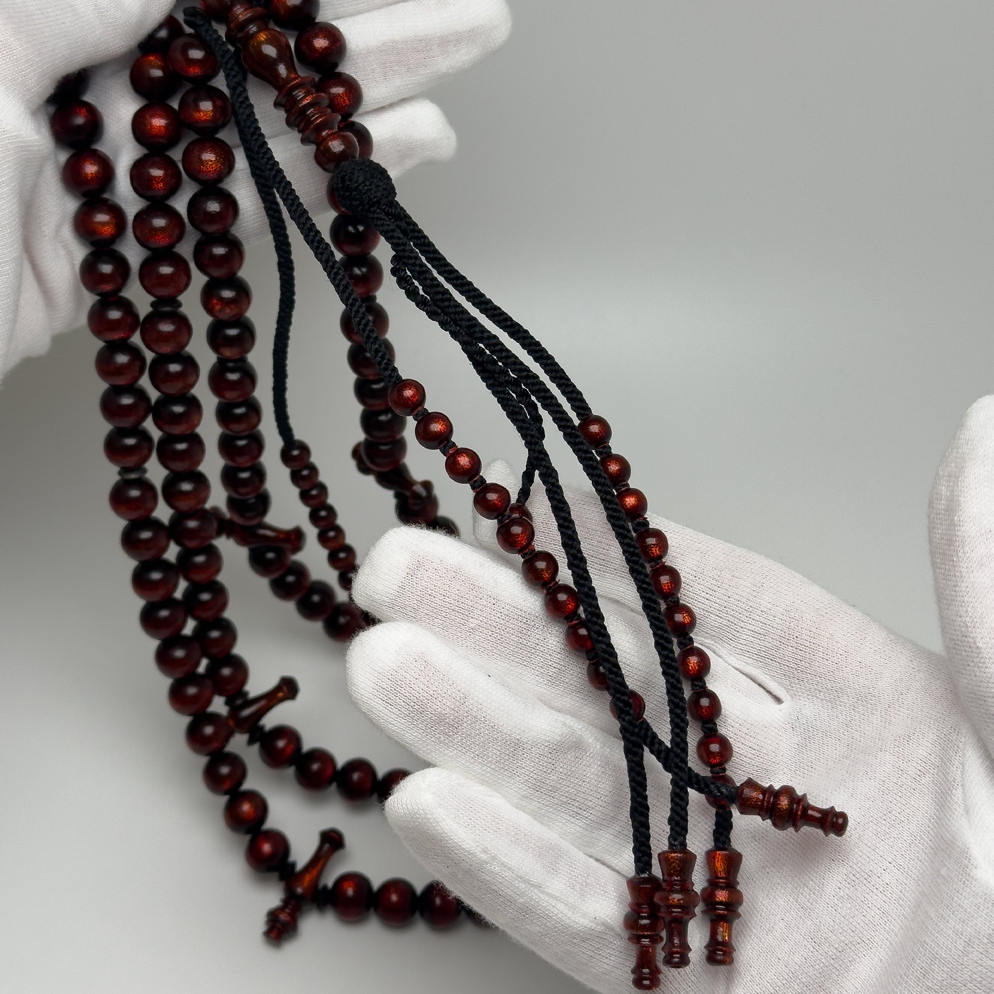 Chaque Kourous Tijani est façonné entièrement à la main en Indonésie par des artisans disciples de la Tariqa Tijaniyya, suivant un savoir-faire ancestral transmis de maître à élève. L’assemblage garantit un tasbih équilibré, solide et agréable en main pour accompagner vos oraisons quotidiennes.